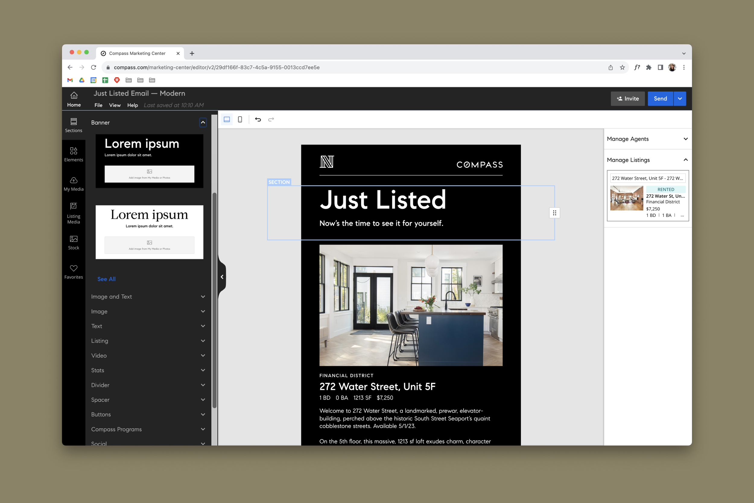 Agents can search and filter through thousands of high-quality templates and fully customize their favorites with copy, images, and personal branding elements. Agents can professionally print, email CRM contacts, or post directly on their social accounts. Take a deeper look into how I collaborate with Product to bring video and email to life in the platform.