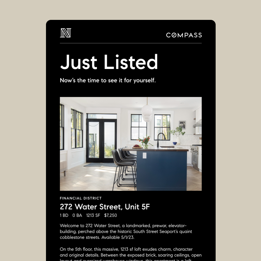 Lead the creation and implementation of all customizable marketing content on the Compass platform, empowering 28K+ agents to customize their own branding and listing content. Creative formats span across digital ads, print ads, direct mail, pitch materials, social, and video.